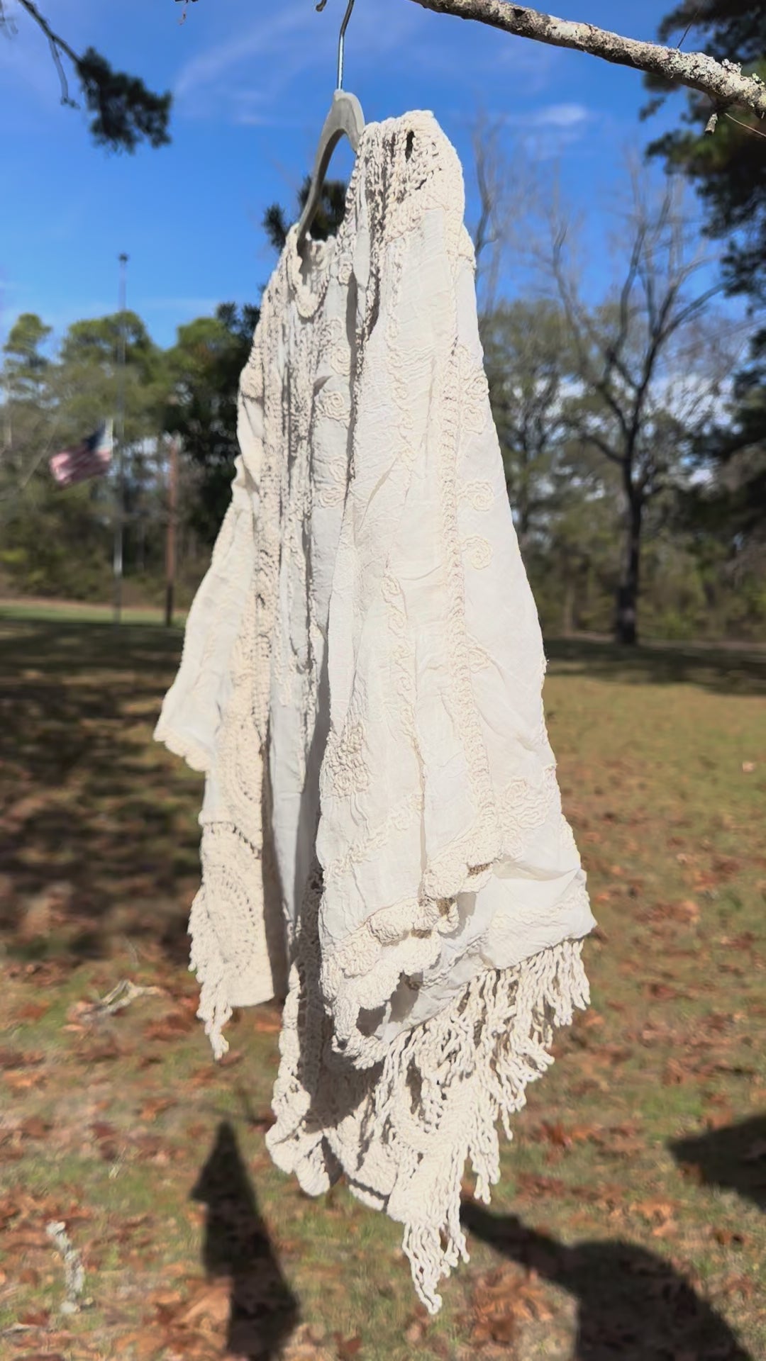 - Intricate crochet + embroidery detailing